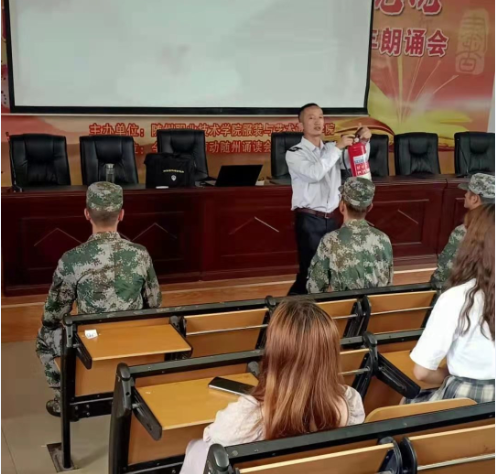 为认真贯彻落实党中央、国务院关于防灾减灾救灾各项决策部署,牢固树立以“人民至上、生命至上”和“两个坚持、三个转变”为核心的防灾减灾救灾理念,根据学院2021年防灾减灾宣传周的活动安排,保卫处于5月12日下午3:00组织举办了春季消防演练活动。参加活动有全体学生工作人员、近两年新进教职员工及各班学生代表,活动共有两个部分,一是在4203教室举行消防安全知识讲座,二是在编钟文化广场举行消防器材使用培训和灭火实战体验。